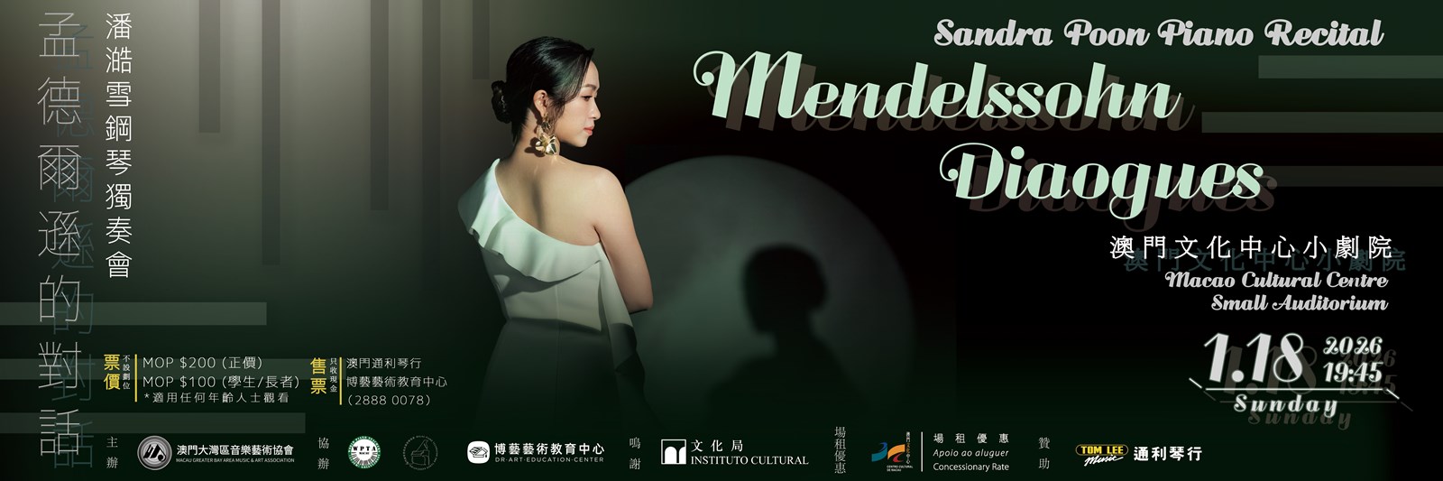 德國作曲家孟德爾遜以神童聞名,很早就從天才蛻變為大師,但他真正的偉大在於把靈性轉化為堅守一生的音樂語言,澳門鋼琴家 潘澔雪將在這次鋼琴獨奏會中,深入他豐富而迷人的音樂宇宙,聆聽他如何在不同體裁間自由漫步,讓嚴謹的結構與即興的詩意,開展一場音符之間的生動對話,如充滿歌唱性的《無言歌》、澎湃激情與古典均衡的《降 B大調奏鳴曲》、色彩斑斕的《升 f小調幻想曲》等代表作,都勾勒出作曲家筆下理性之形與浪漫之魂的完美融合。