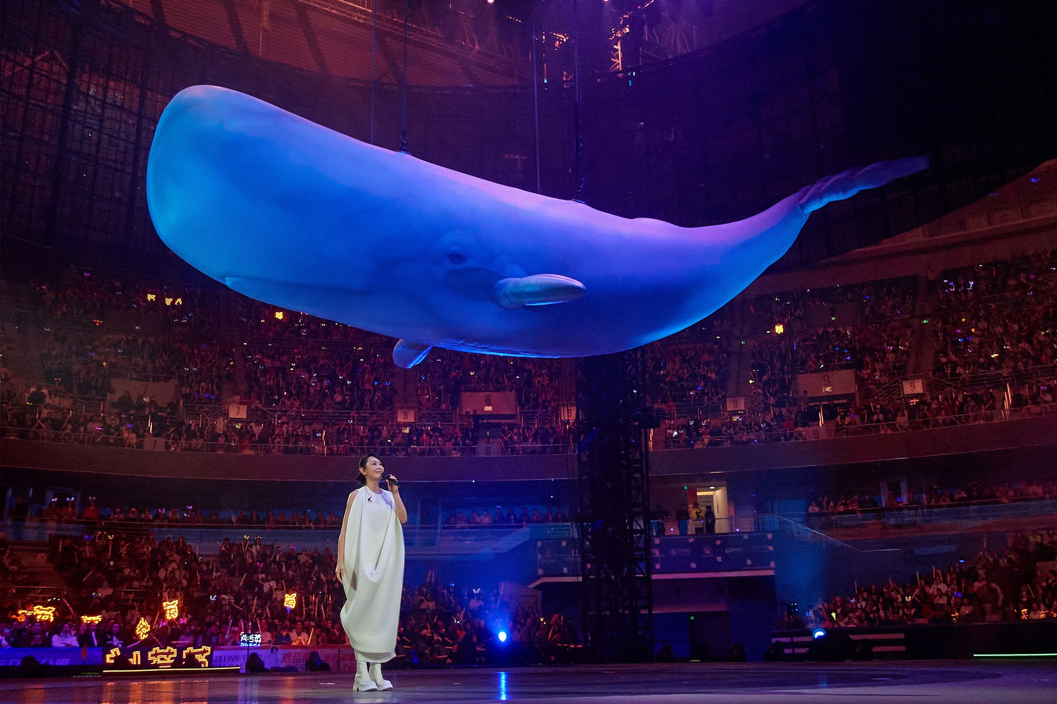 劉若英 [ 2024飛行日巡迴演唱會 ] 精心打造千變萬化的四面台舞台,琳瑯滿目的華麗機關包含飛天鯨魚、五米高巨熊、反地心引力失根懸木、環環相扣極光天台,以及榮獲國際大獎的燈光設計等等,缺一不可,因此需要承重掛設各項大型舞台機關,以及因應各城市場館設備不盡相同,本巡迴演唱場次有分為「有立柱」與「無立柱」的不同舞台設計,以求每個場次都能完整呈現節目舞台效果,更重要的是能符合各城市場館的安全規範,保障每一位台前幕後工作人員、現場樂迷等人安全。