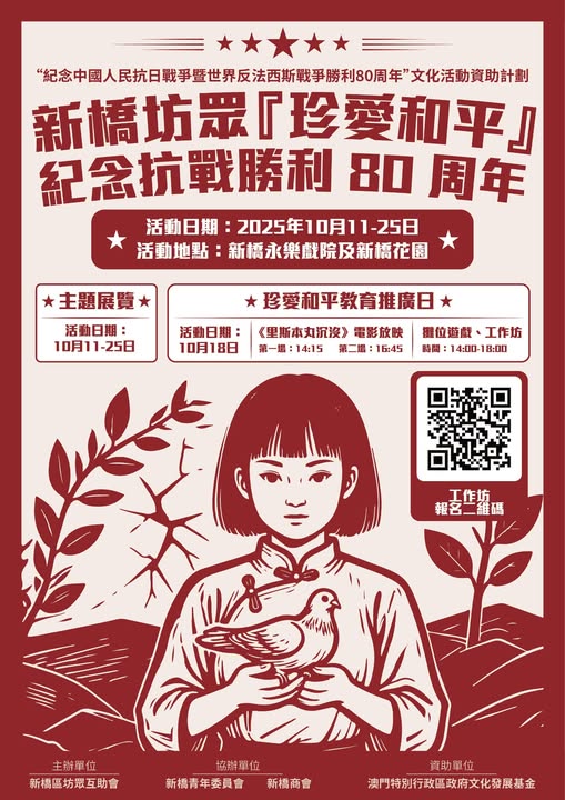 10月11至25日,澳門新橋坊眾會址舉行「珍愛和平」影像展,以半月光影重溫抗戰暨世界反法西斯勝利80周年。現場珍貴照片揭露:當年澳葡政府標榜「中立」,本地華人卻暗中籌款、偷運藥械、收容難民,用行動寫下「不中立,不缺位」的燈塔式注腳。來看烽火赤子情,守護永不黯淡的民族記憶。