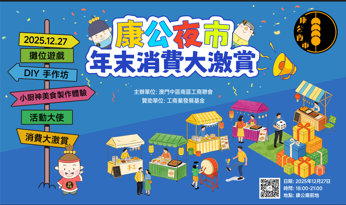 活動當天於康公夜市攤位消費每次夠$50澳門幣,憑支付記錄即可參加抽獎遊戲一次,禮物數量有限送完即止!除此之外還增設其他(免費)活動項目,快D約埋三五知己過嚟夜市渡過快樂又有趣的晚上……!