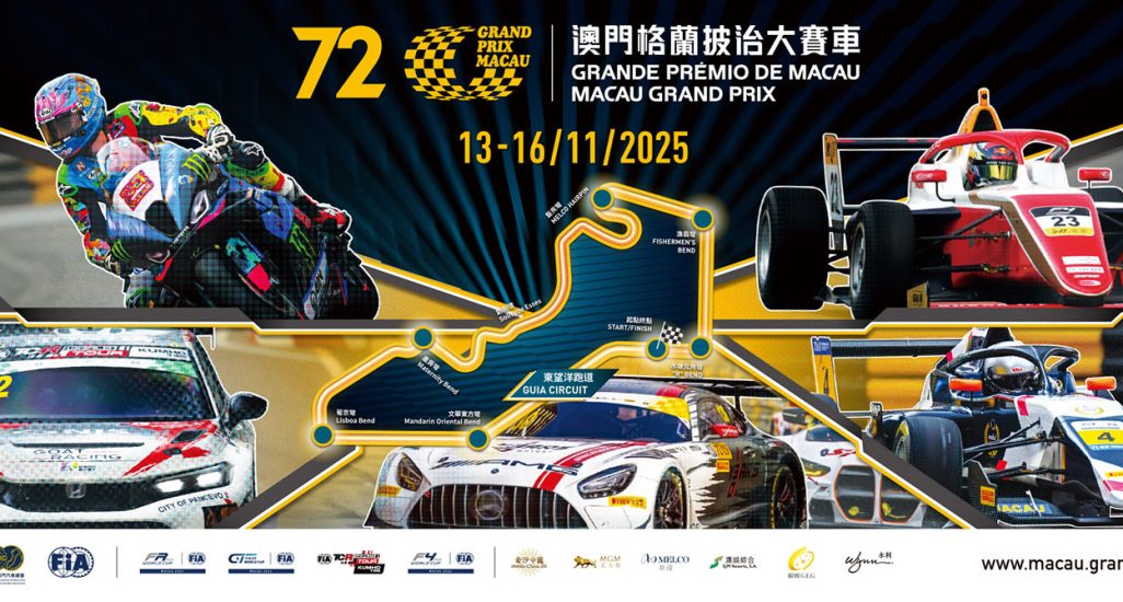 澳門年度國際體壇盛事 — 「第72屆澳門格蘭披治大賽車」將於11月13日至16日舉行。