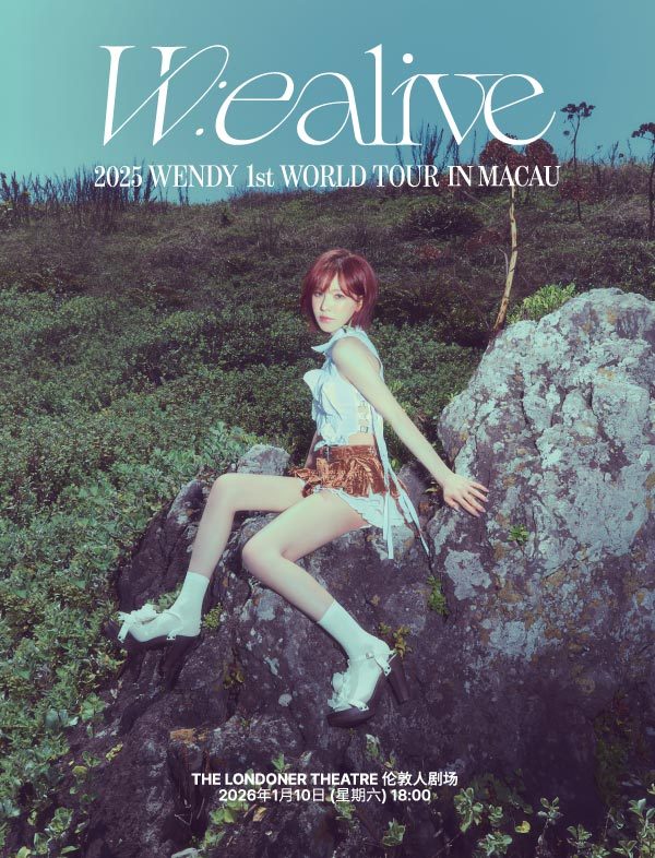 WENDY首次個人世界巡迴《W:EALIVE》登陸澳門!以溫暖歌聲與驚艷舞台,呈現多彩音樂世界。這是一場充滿生命力的音樂盛宴,與WENDY共同創造難忘回憶!