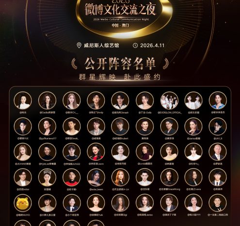 值此澳門回歸27周年之際, “2026微博文化交流之夜-中國·澳門” 將於4月11日在威尼斯人綜藝館榮耀啟幕。本盛典以「金聲匯流年・鎏光共潮生」為主題,採用線上線下聯動形式:線上依託微博主話題及多元子話題,通過實時圖片、視頻與全球網友互動;線下設萬人主會場,呈現明星紅毯、榮耀頒獎、主題表演、粉絲互動及文化市集等環節。本次活動匯聚中國及全球多地影視、音樂、文化領域精英與藝人,發布多元榮譽榜單,以星粉沉浸式深度互動凝聚跨文化溝通的磅礴力量,共促中外文明的交融互鑒、共生共榮。',