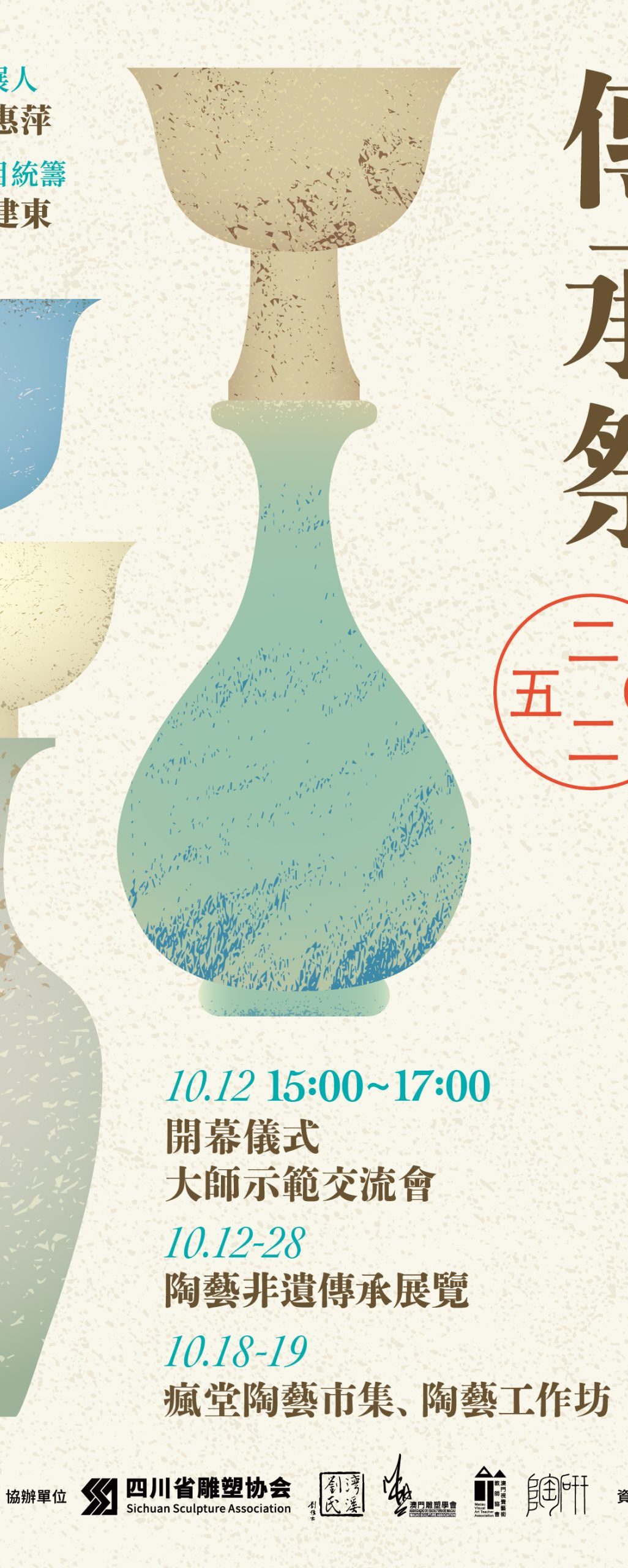 協辦單位:四川省雕塑協會、灣溪劉氏、澳門雕塑學會、澳門視覺藝術教師協會、陶研陶藝工作室